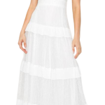 Vestido blanco con detalles de encaje con olanes en la falda